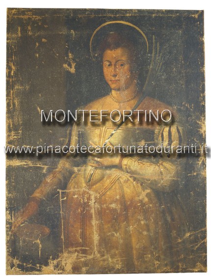 La tela presenta un cattivo stato di conservazione in quanto in più punti vi sono cadute di colore e la superficie pittorica risulta graffiata. E’ un’immagine devozionale, di fattura non raffinata, di Santa .......